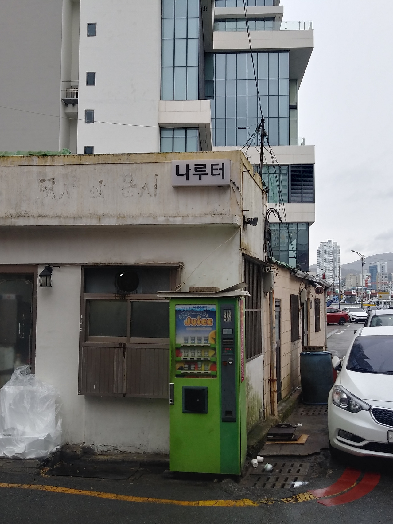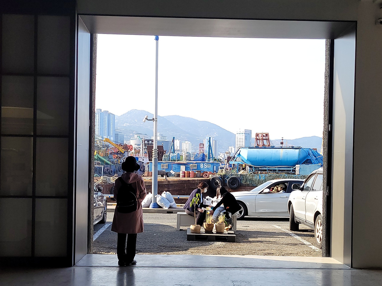 철 냄새가 물씬 풍기는 조선소 앞에 카페가 있다.