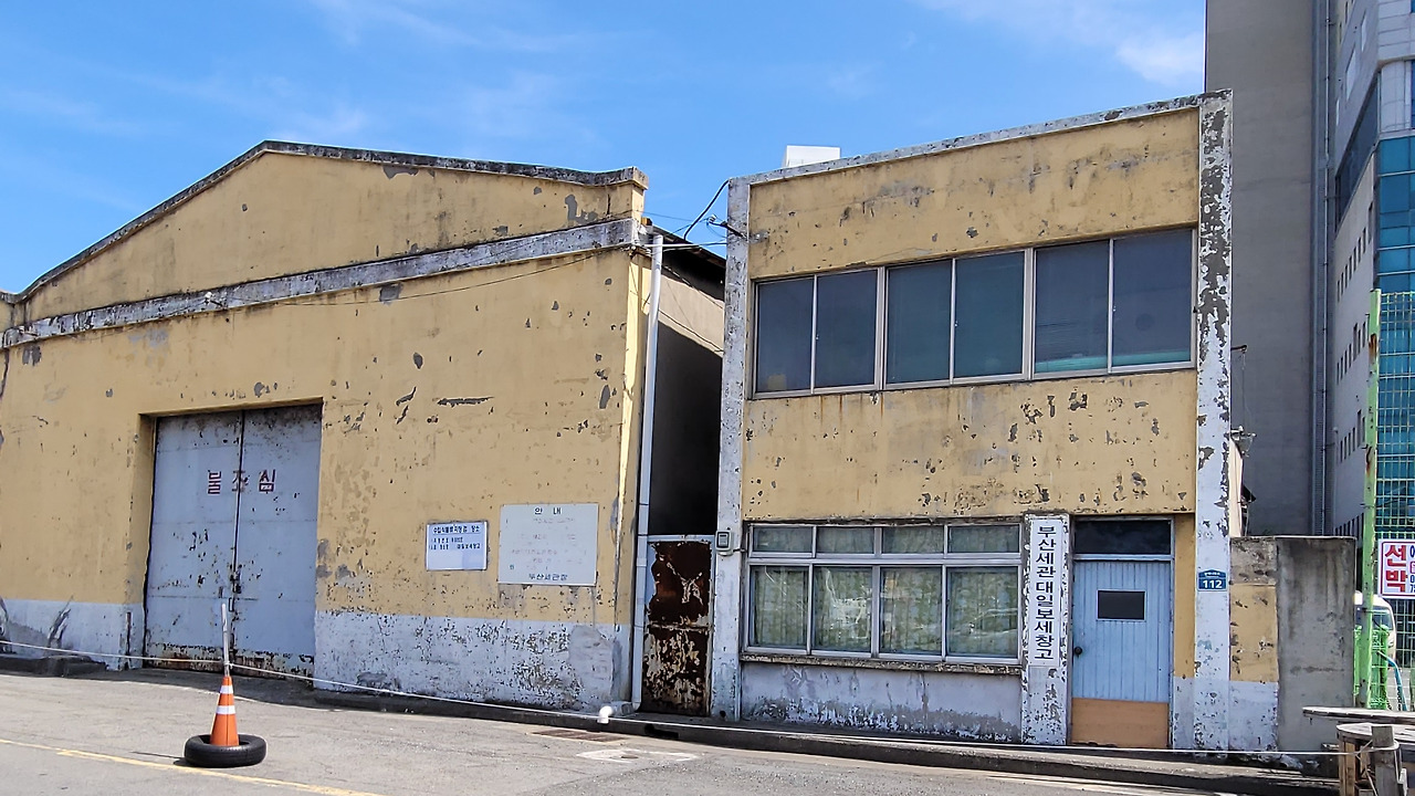 근대 항만 창고거리다. 대형 창고들이 봉래나루로를 따라 줄지어 있다. 보세창고들이다. '부산세관 대일 보세창고', '수협 식품류 검사 창고'가 보인다. 지금 사용하고 있는지 궁금증이 생긴다. 창고거리에 젊은이들의 통행량이많아진다. 길거리는 활기가 넘친다.