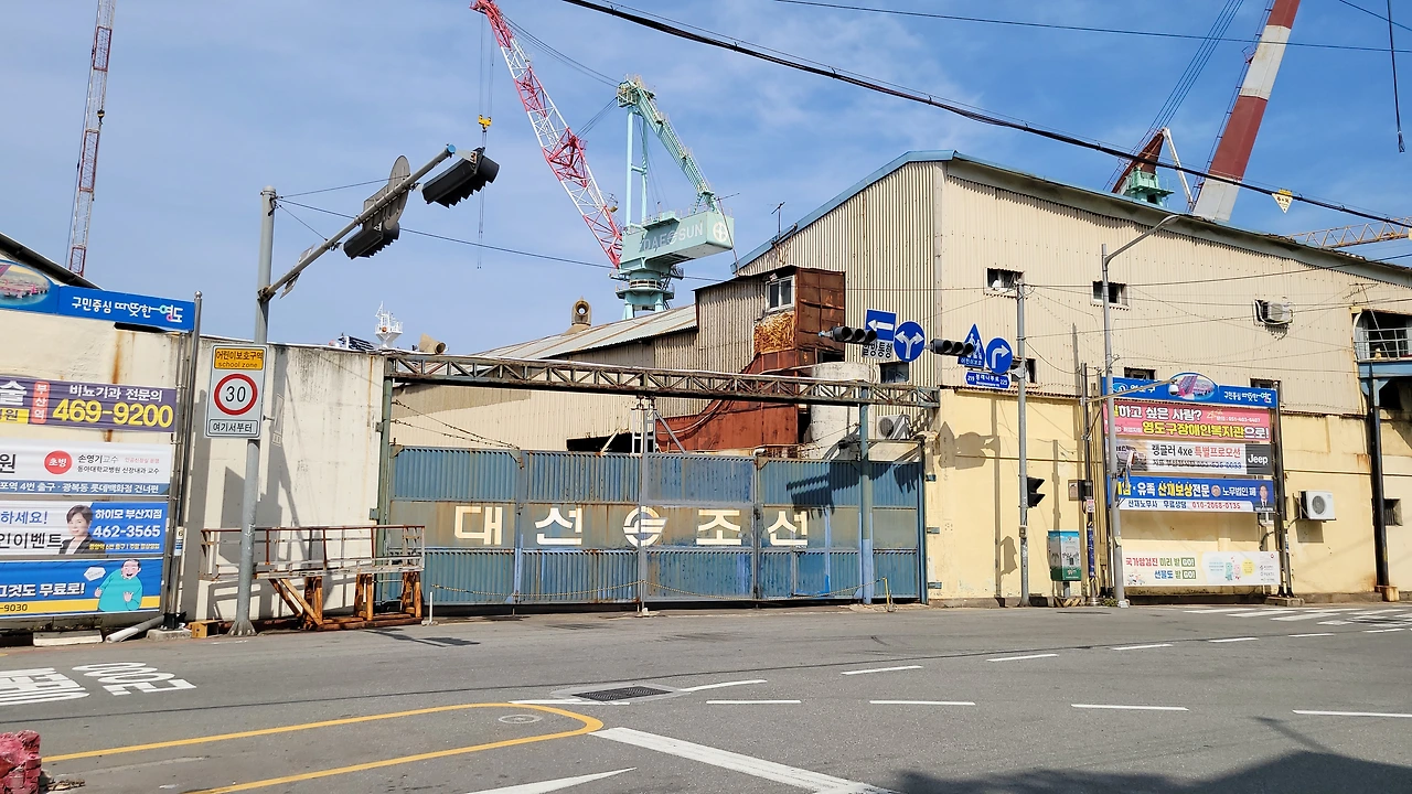 대선조선 앞에서 홈플러스를 거쳐 미광 마린타워 아파트로 간다.