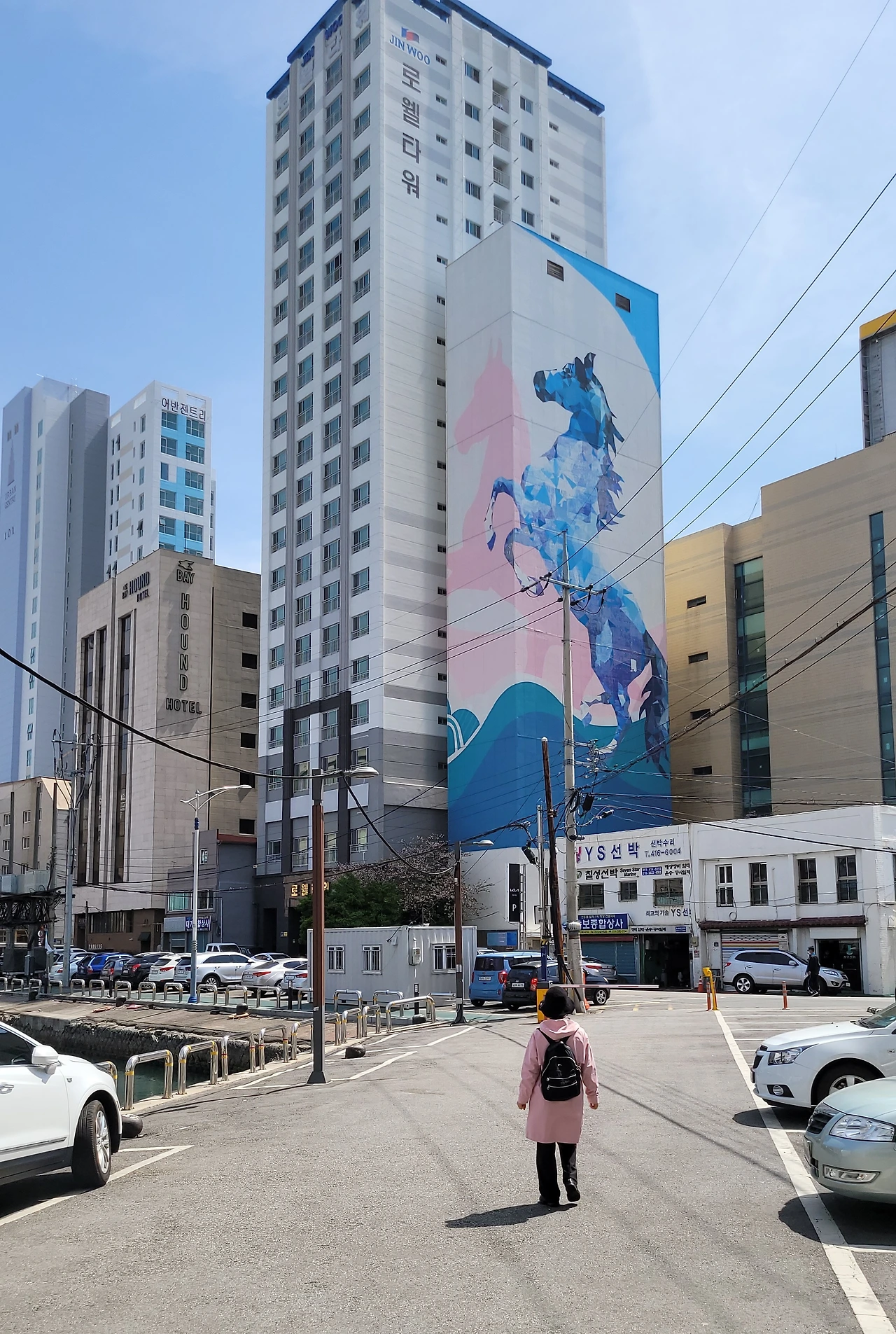 봉래동 물양장으로 들어서니 대형 벽화가 영도의 존재감을 알린다. 날씬하게 생긴 명마가 앞발을 치켜들고 있다. 영도는 옛부터 절영마로 유명하다. 말이 얼마나 빨리 달리는지 그림자가 보이지 않는다 하여 절영마다.
