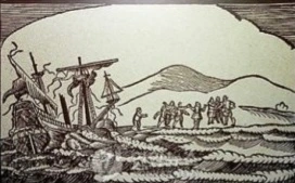 계사년 7월 24일 서양국 만인 헤틀리크암센 등 64명이 함께 탄 배가 대정현 차귀진 밑의 대야수에서 부서졌다. 26명이 죽고 2명은 병들어 죽고 36명이 살았다. 검정, 흰색, 빨간색 세 가지 색이 섞인 옷을 입었다. / 지영록 137쪽 <서양국 표인기>, 이익태