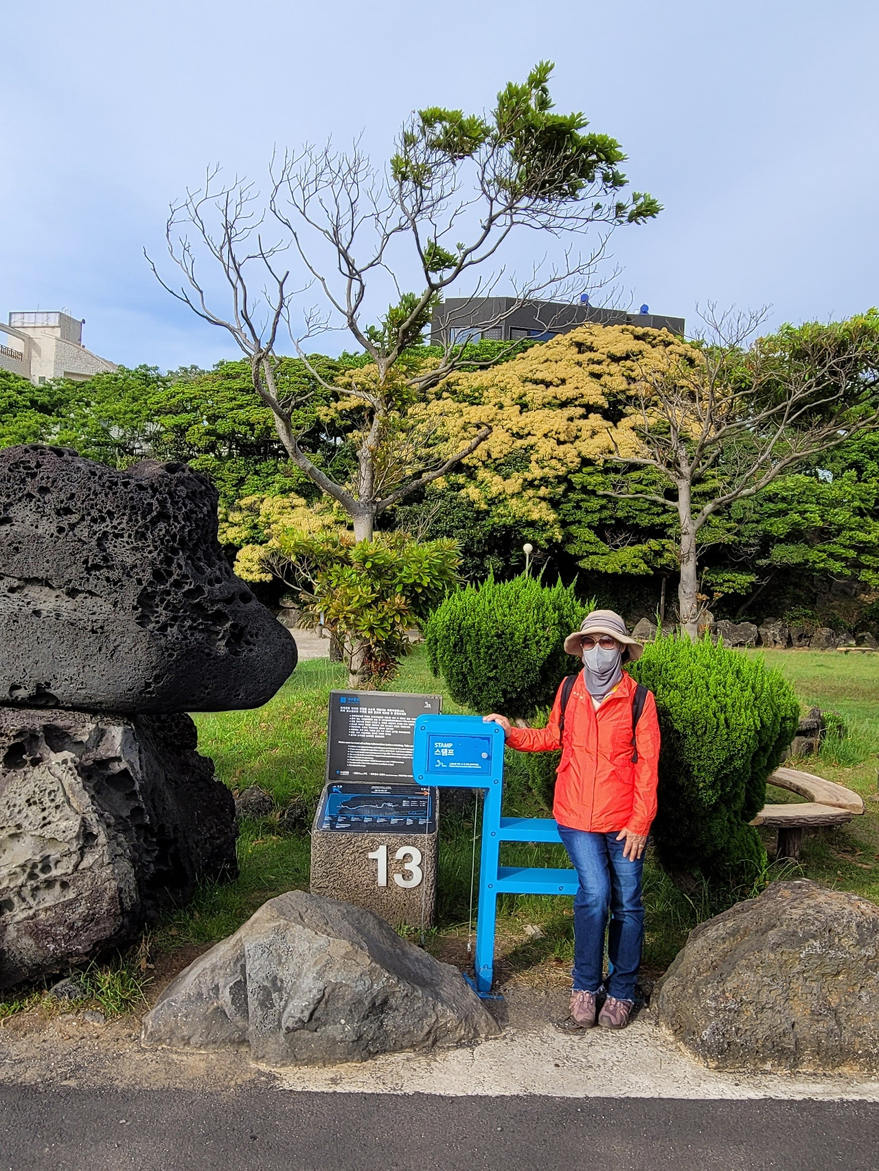 여기가 올레 12코스의 종점이자 13코스의 출발점이다. 우리는 일주서로 용수 교차로까지 올레 13코스를 따라 20여 분 더 가서 오늘 일정을 마친다. 버스 타기가 쉽다. 용수리 충혼묘지 주차장에서 202번 버스를 탄다. 13코스를 여기서 시작할 생각이다. (2022. 5. 15)