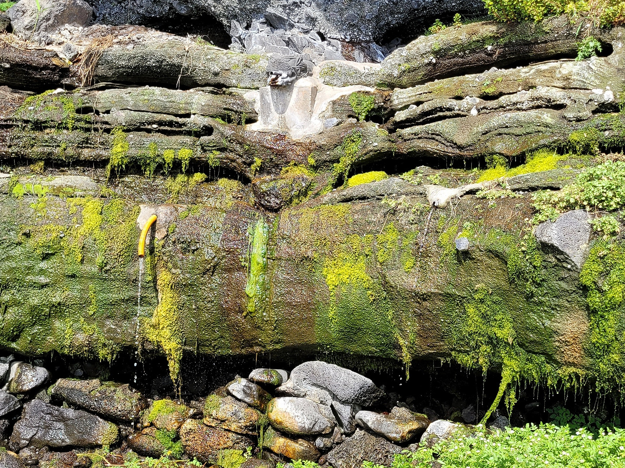 녹고의 눈물. 벼랑 곳곳에 샘물이 솟아올라 흘러내린다. 이 약수터는 누이를 목 놓아 부르는 동생, 녹고의 눈물이라 한다.