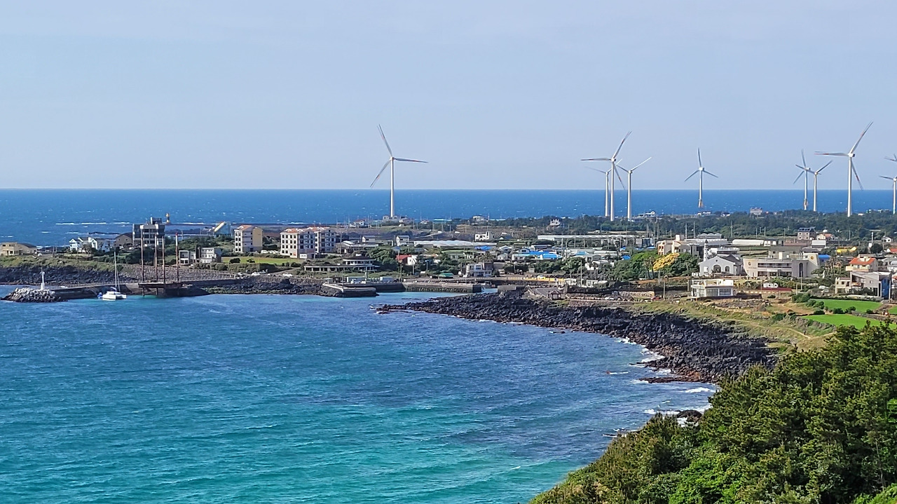 모퉁이를 돌면 용수 포구에 옹기종기 모여 있는 형형색색의 집들이 보인다. 서서히 돌고 있는 풍력발전기의 하얀 날개가 눈앞으로 점점 가까워진다.