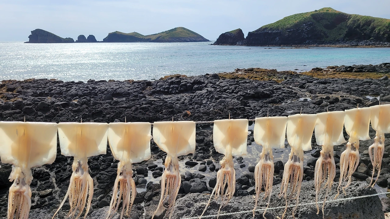 바닷바람에 오징어를 말리고 있다. 반건조 오징어 한 마리를 산다. 이곳은 전설의 섬 이어도를 배경으로 한 김기덕 감독의 '이어도'를 촬영한 장소로 알려져 있다.