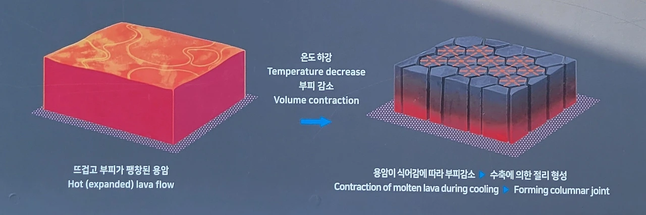 절리는 액체 상태인 뜨거운 용암이 고체 암석으로 굳어지면서 부피가 줄어들어 형성된 것이다.