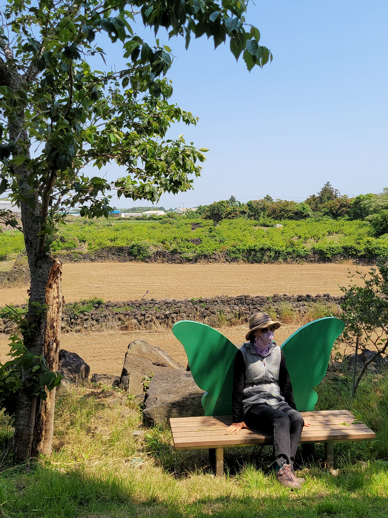선녀가 목욕하고 하늘로 날아간 곳, 선세비(仙洗飛)라는 작은 호수를 지나간다. 마늘대를 베어 밭에 열 지어 눕혀 놓았다. 호박이 비닐을 비집고 나온다. 이제 숲길이 시작되어야 하는데, 올레 리본은 농로를 지나 아스팔트 2차선 차도로 안내한다.