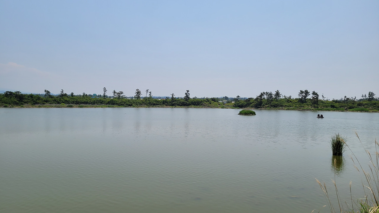 "물 위에 마름 군락, 물참새피 군락이 있고, 주변에는 부들 군락, 아기 부들, 갈대 군락이, 물속에는 검정말 군락이 있습니다. 겨울에는 철새들이 많이 옵니다. 황새, 백로, 왜가리, 바다오리 등이 관찰됩니다. 잉어, 붕어, 미꾸라지들도 살고 있지요"