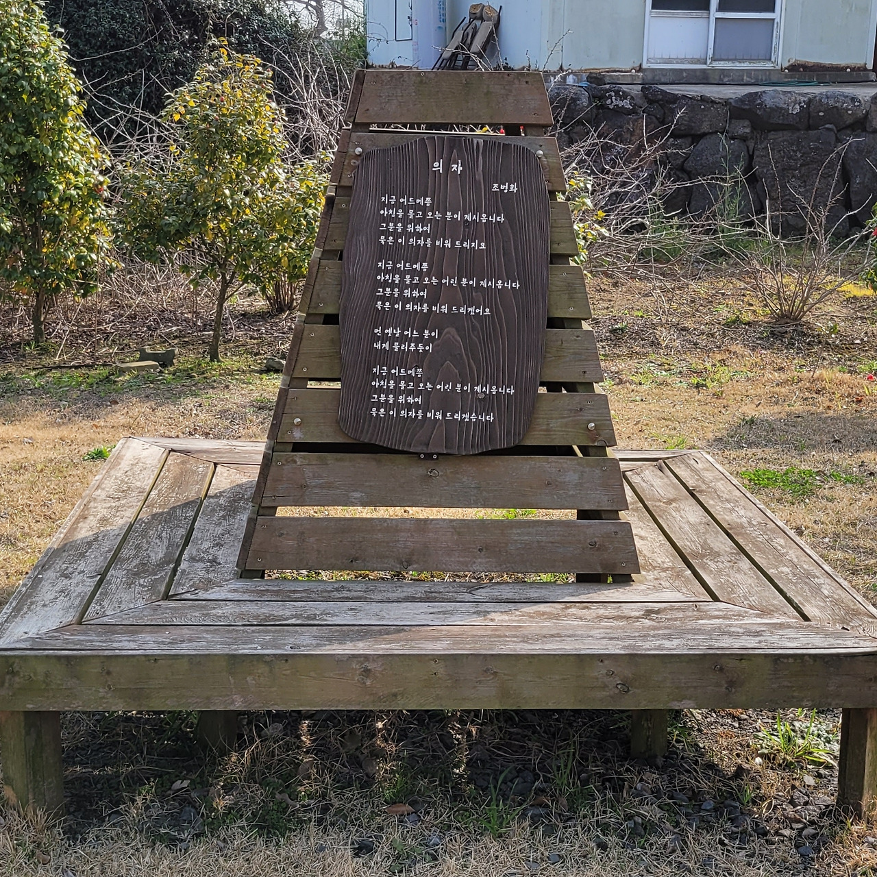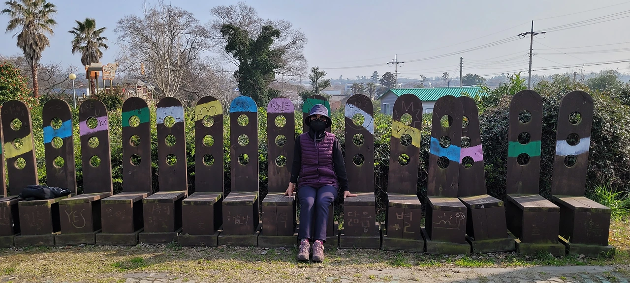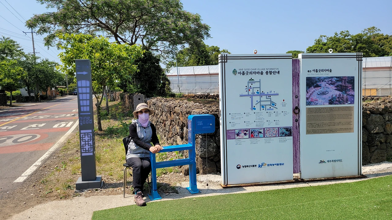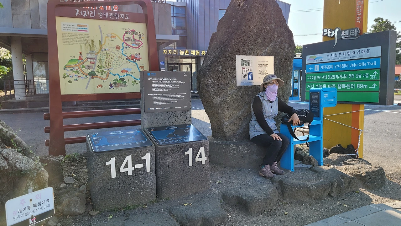 저지리 농촌체험 휴양마을 안내센터 앞에는 온통 마을 소개와 자랑이다. 여기서 오늘 일정을 마친다. 제주올레 안내센터에서 돌아갈 버스 편을 문의하니 관광지 순환버스 820번을 안내한다.(2022. 5. 17)