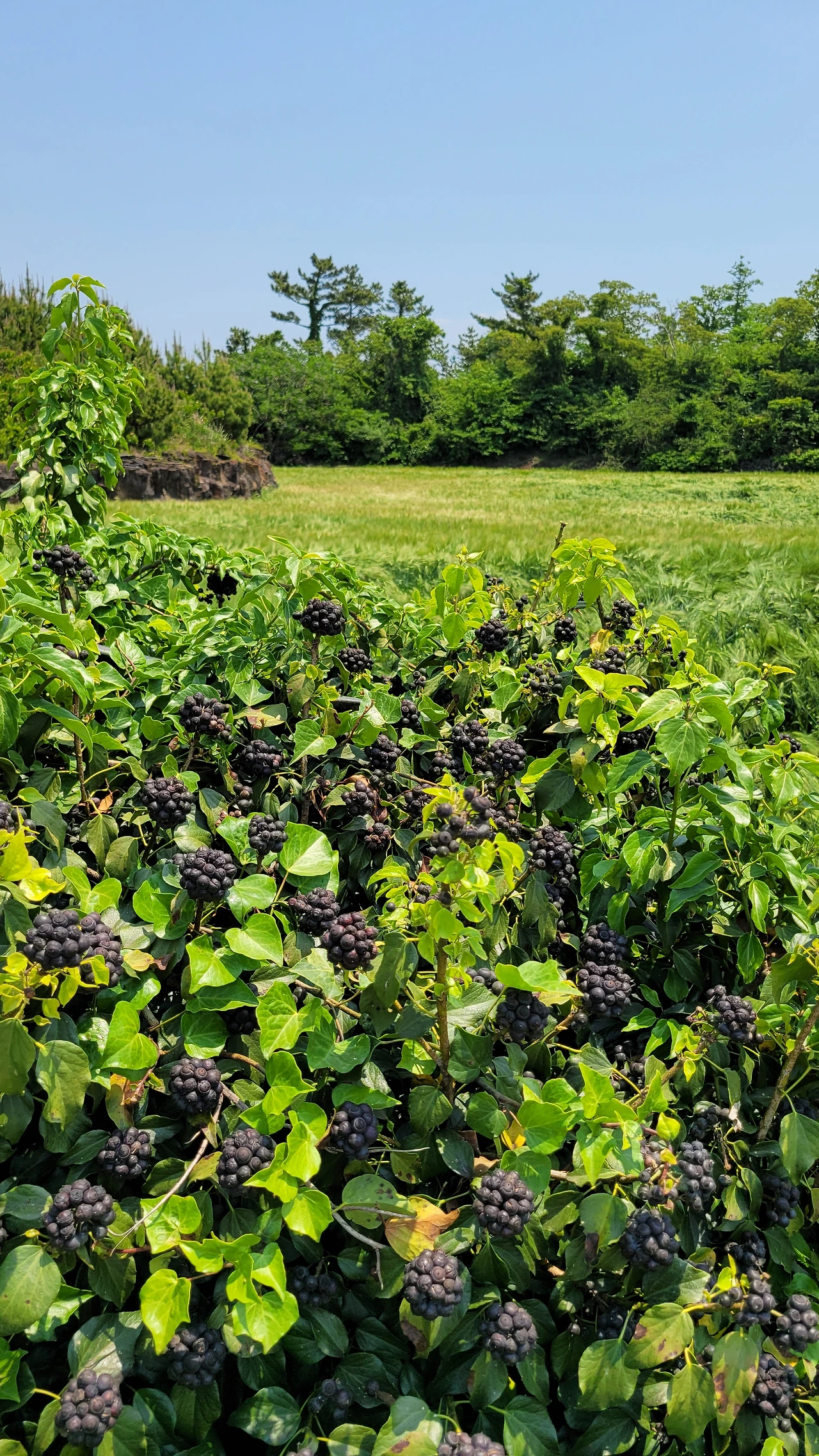 길옆에는 담장나무, 소밥나무라고 불리기도 하는 상록 활엽 덩굴성 식물인 송악이 포도송이 같은 열매를 달고 돌담을 덮고 있다.