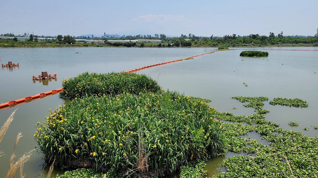 수면에 비친 구름이 주변의 경관을 돋보이게 한다. 멀리 환경감시선이 저수지를 순회하고 있다. 시료를 담은 병을 챙긴 직원은 '이 부근의 버려진 논에 광범위하게 분포한 습지는 습지 생태계의 보고'라는 설명을 덧붙이며 차에 오른다.