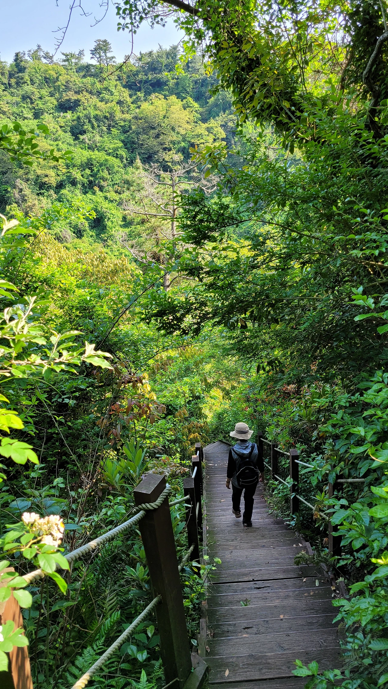 이 비경에 홀려 내려갈 때는 몰랐는데, 올라오려고 위를 쳐다보니 까마득하다. 복식호흡을 하면서 계단수를 헤아리며 단숨에 올라간다. 얼마 남았는가 위를 쳐다보지 않고 발 밑의 계단만 보고 올라간다. 그래야 올라가기가 수월하다. 기록해 놓지 않아 자신은 못 하지만 260계단인 것으로 기억한다.