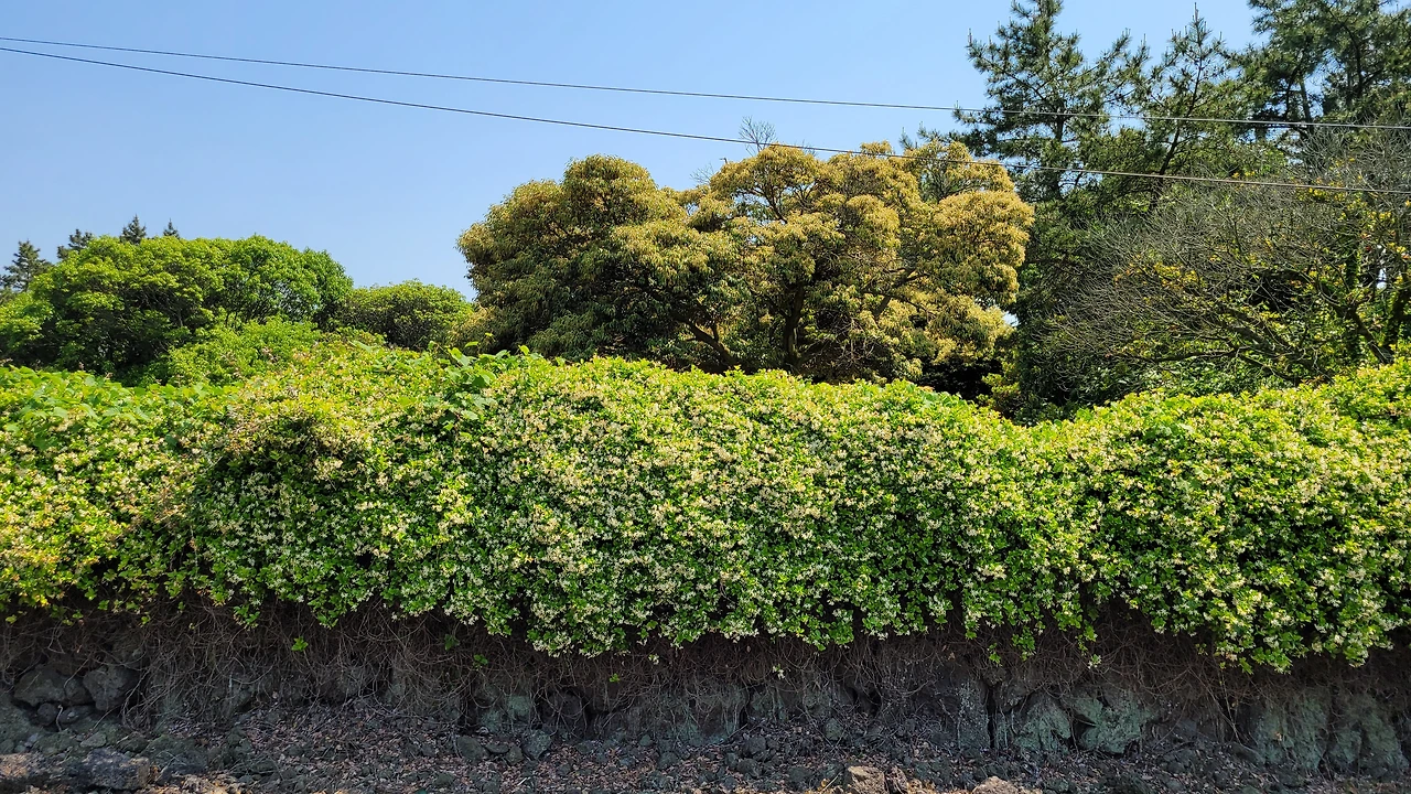 오사록 농로를 지나간다. 제주어인 오사록헌은 제주어로 '아늑하다'라는 말이다. 제주 들녘을 걷는 느낌이 아늑해서 부르기에도 시어처럼 아름다운 이름을 지었다 한다. 길 폭도 일정하지 않고 길옆은 키가 작은 관목과 덩굴식물이 벽을 치고 있다. 길바닥은 폭신한 풀밭과 부드러운 흙이다.