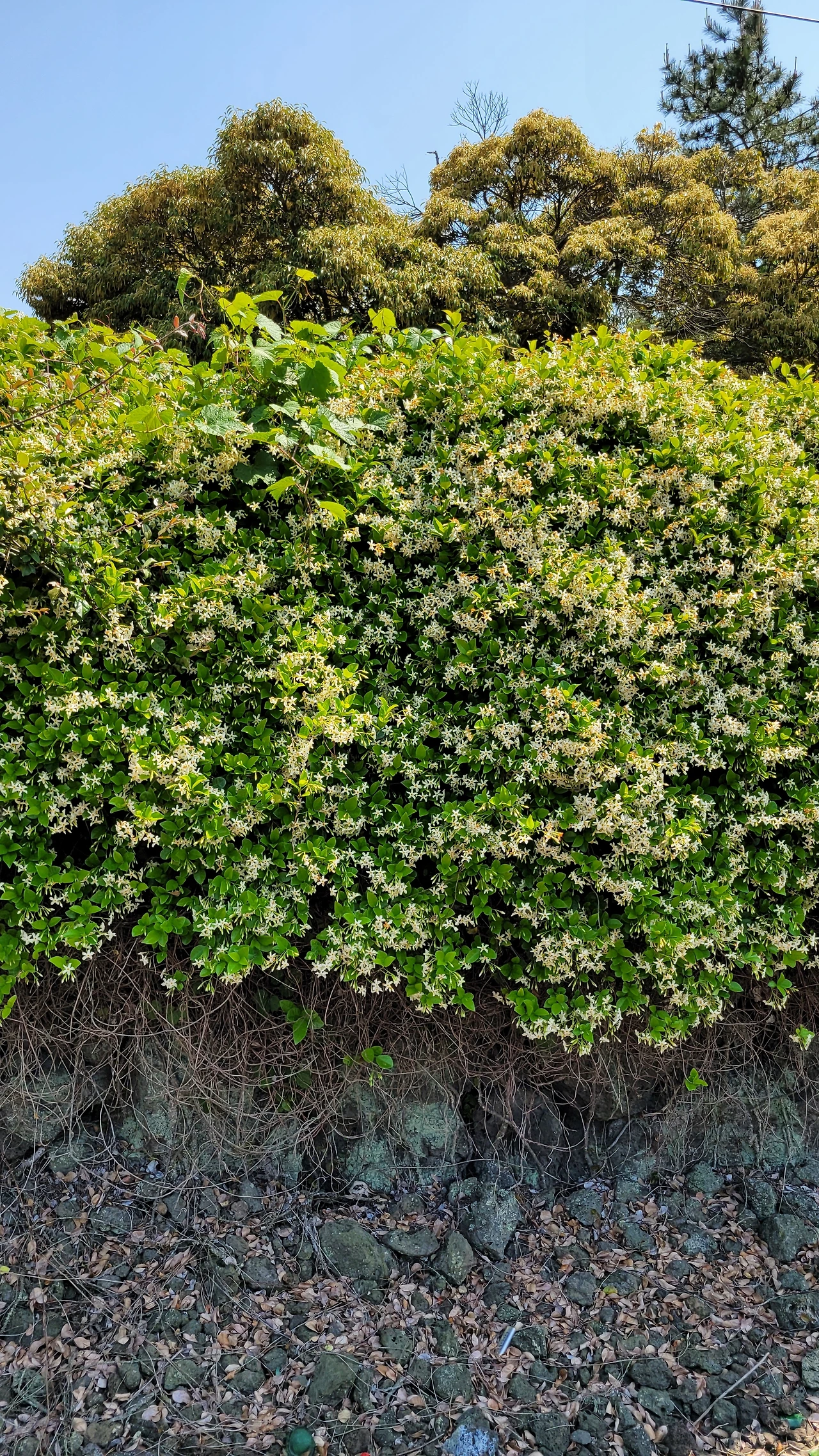 백화등. 백화동(북한), 백화등(白花藤), 백화마삭덩굴, 백화마삭줄 등의 다른 이름을 가진 백화등이 '하얀 웃음'을 웃으며 담장을 덮고 있다. 정확히는 노란 웃음이다. 처음 흰색이던 꽃이 점차 노란색으로 변하여 멀리서 보면 마치 인동덩굴처럼 보인다.