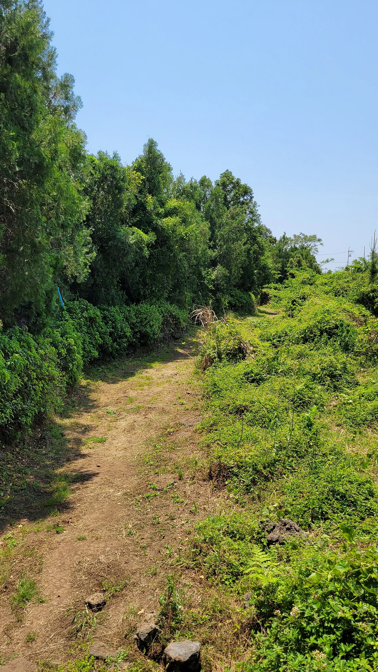 굴렁진 숲길. 밭길과 작은 숲길이 번갈아 나타난다. 움푹 파인 지형을 제주어로 '굴렁지다'고 한다. ‘굴렁진 숲길’도 지난다. 크고 작은 화산석이 울퉁불퉁 튀어나오고, 돌이 빠진 자리가 움푹 파인 제주도 산길에서 흔히 만날 수 있는 숲길이다. 제주 토속어로 이름 지으니 제주다움이 한층 더해진다.