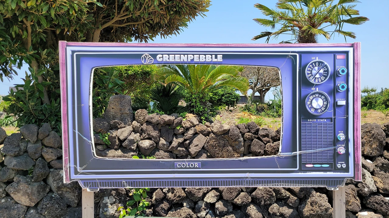 야자수와 돌담이 어우러진 제주스러운 화면을 연출하는 오래된 텔레비전 영상을 한 포토존이 눈길을 끈다.