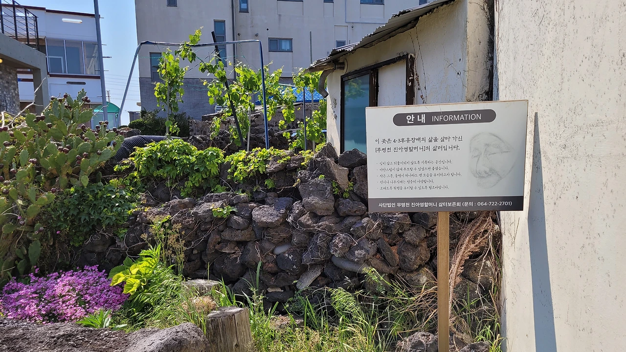 올레14과 함께 가는 무명천 산책길을 따라 ‘무명천 할머니 삶터'를 찾아간다. 월령리 복지회관 근처의 초록색 지붕의 자그마한 집 앞에 선다. 할머니가 살았던 안식터이다.