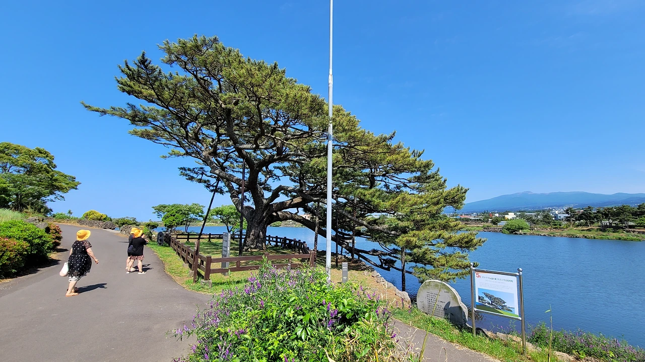 노송이 호반을 지키며, 풍유 멋을 더해준다.