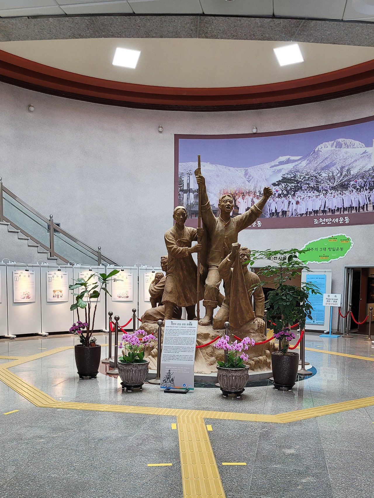 제주항일기념관 현관에 설치된 상징 조형물, '오인의 군상'