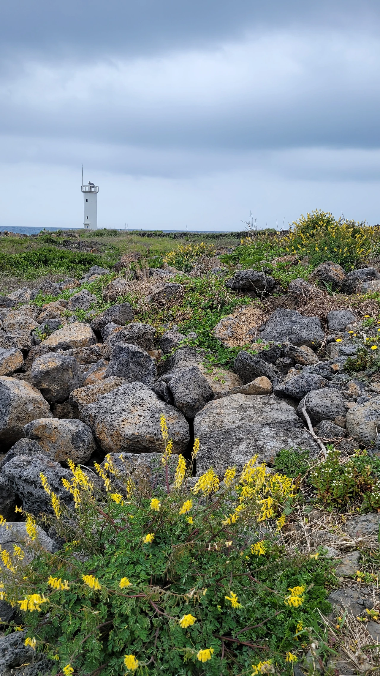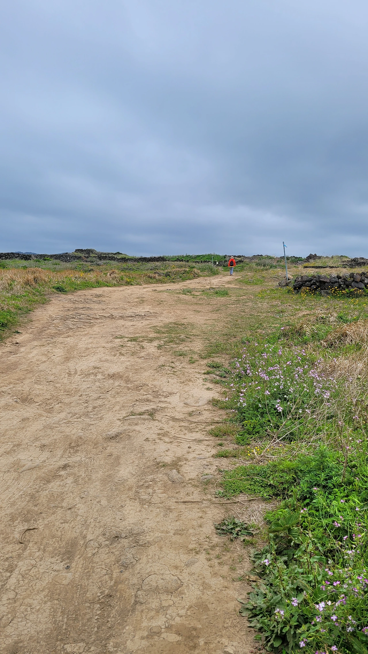현무암 해변에는 거센 파도가 밀려와 하얗게 부서진다. 제주에서는 흔치 않은 황톳길이 이어진다. 산괴불주머니가 돌담 사이로 노란 꽃을 달고 있고, 한쪽으로는 갯무가 연분홍 꽃을 피우고 있다.