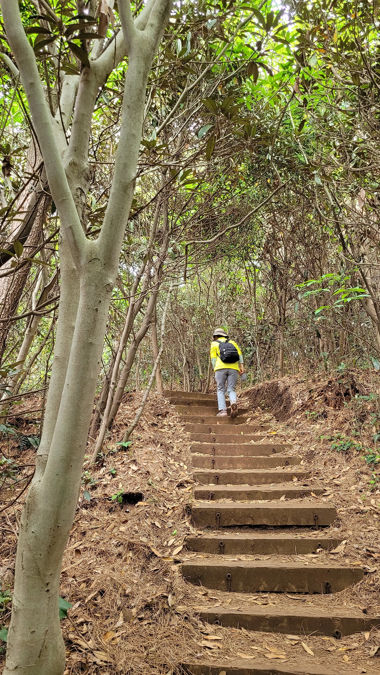 활엽수가 우거진 사이로 난 나무 계단길은 경사가 급한 편이나 길지는 않다.