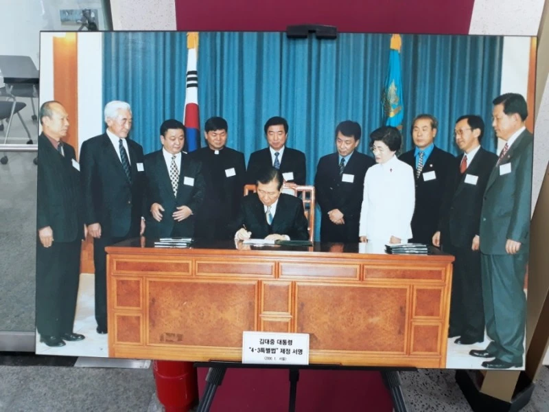 "우는 것에조차 죄를 묻던 시절이 가고 이젠 대성통곡을 해도 괜찮은 시절이 됐네. '4.3은 국가권력에 의해 저질러진 양민 학살'이라는 노무현 대통령의 사죄를 듣고 우리는 긴 세월 가슴속 깊은 곳에 꾹꾹 눌러 뒀던 울음을 꺼내어 소리 없이 울었어. "