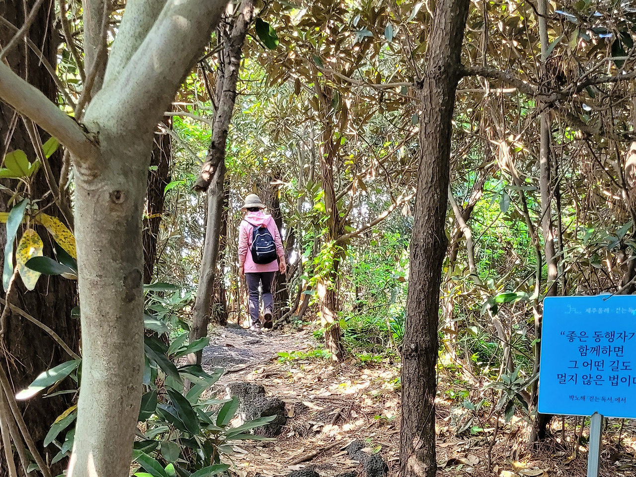 올레19길에 이어 20길에도 박노해의 시어가 전시되어 있다. 제주올레는 박노해의 저서 <걷는 독서>의 책 표지와 같은 파란색의 게시판에 시인의 간결한 글을 전시해 올레꾼에게 울림을 준다.