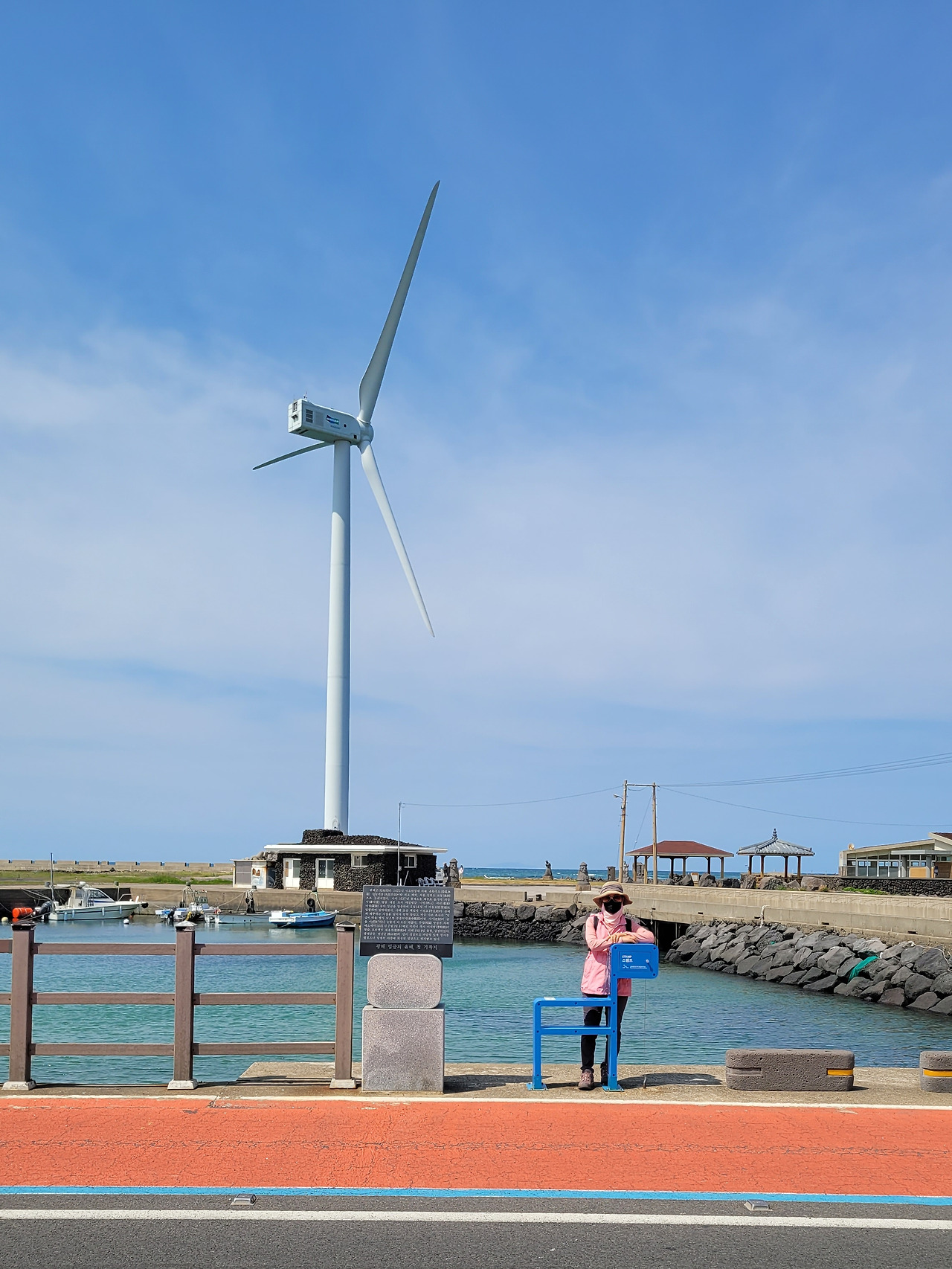 한국에너지 기술연구원 제주글로벌연구센터를 마지막으로 김녕리에서 월정리로 건너간다. 월정 투명카약 타는 곳을 먼저 만난다. 해상풍력발전소의 풍차와 푸른 바다를 내려다보는 투명카약. 환상적인 조합이다. 바람이 센데 노젓기가 어떨지. 애월 해변보다 타는 사람이 적다.