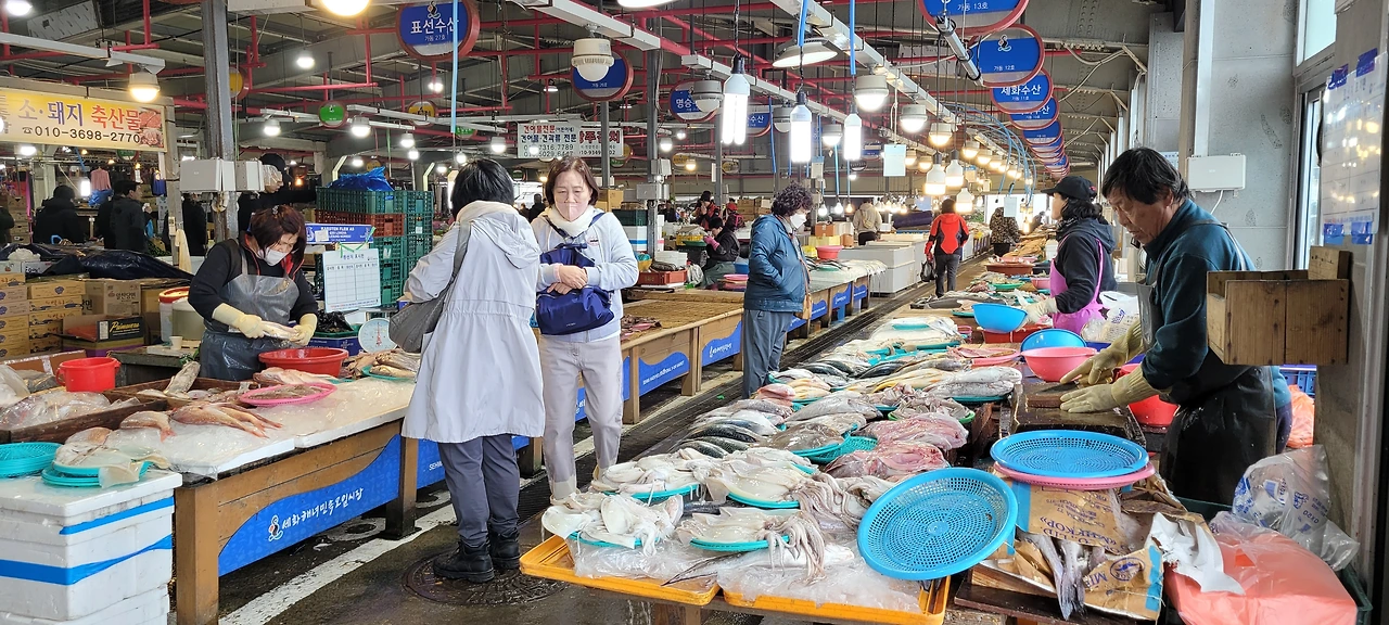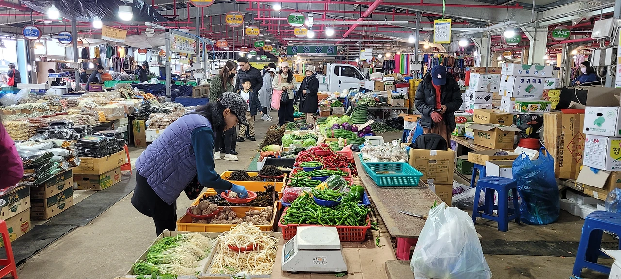 세화포구에 인접해 있어 해산물이 특히 풍부한 것으로 알려져 있다. 어물전, 젓갈전, 채소전에 사람들이 붐빈다. 옷가게는 한쪽으로 밀려나 한산하다. 한칸에서는 둘러서서 어묵을 먹고 있다. 꽃가게의 활짝 핀 꽃들이 장날 풍경을 화사하게 밝힌다.
