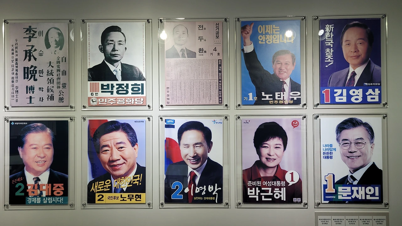 대통령 기념관에 들어간다. 역대 대통령의 선거 포스터가 게시되어 있다.