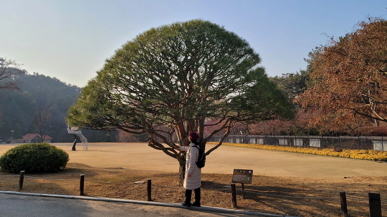 반송. 청남대 주도로 양쪽에 여러 그루 심어져 있다. 80여년 된 것으로 가지가 많아 만지송, 다행송으로도 불린다.