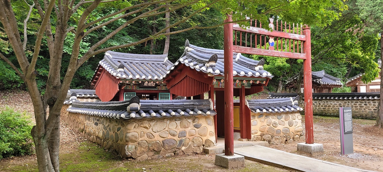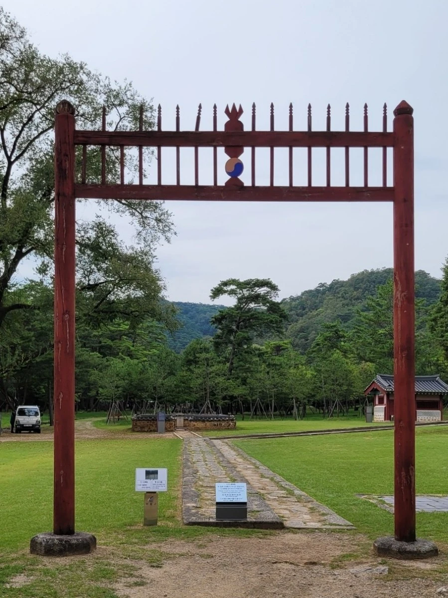 동쪽의 입구에는 홍살문이 있다. 신성한 지역임을 알리는 문으로 붉은 기둥 2개를 세우고 위에는 살을 박아 놓았다.