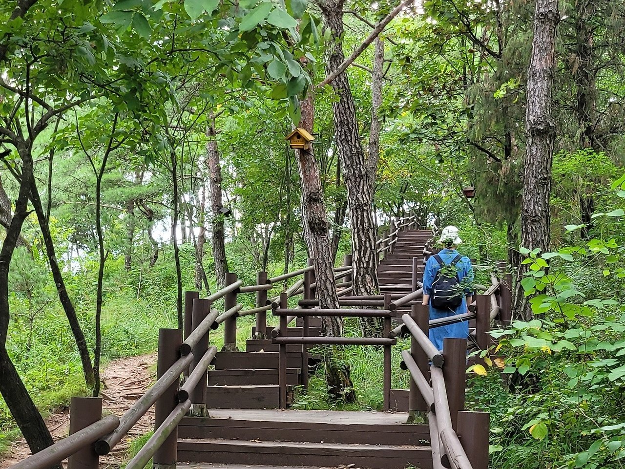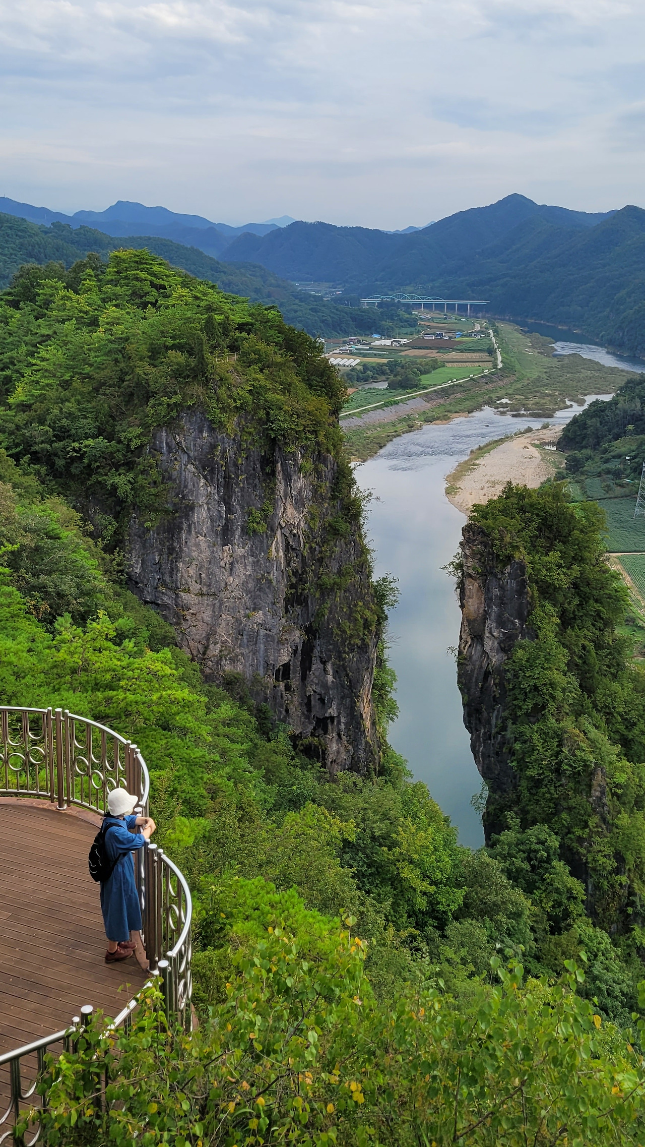 나무 덱을 오른다. 소나기재 정상 부근에 ‘선돌’이라 부르는 약 70m 높이의 기암괴석이 우뚝 서 있다. 단종은이날 영월읍 방절리 날골마을과 남애마을 사이의 서강변에 솟아 있는 선돌을 바라보며 마치 신선과 같다고 하여 사람들은 ‘신선암(神仙岩)’이라고도 불렀다고 한다.