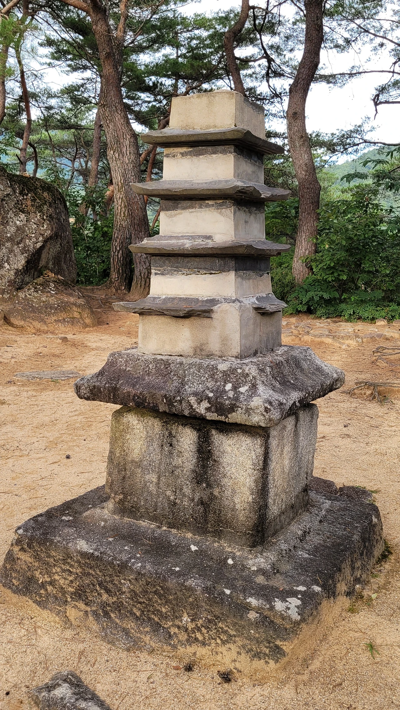 무릉리 마애여래좌상(좌, 강원도 유형문화재 제74호), 오층석탑(우)