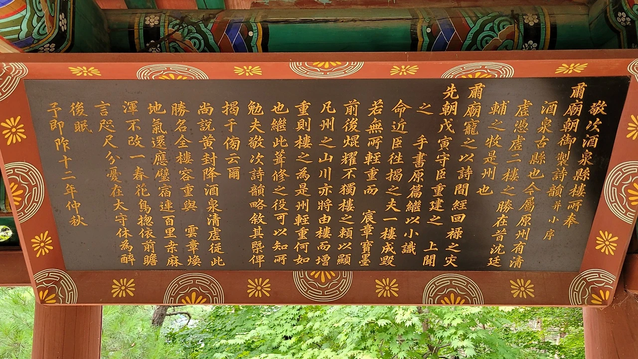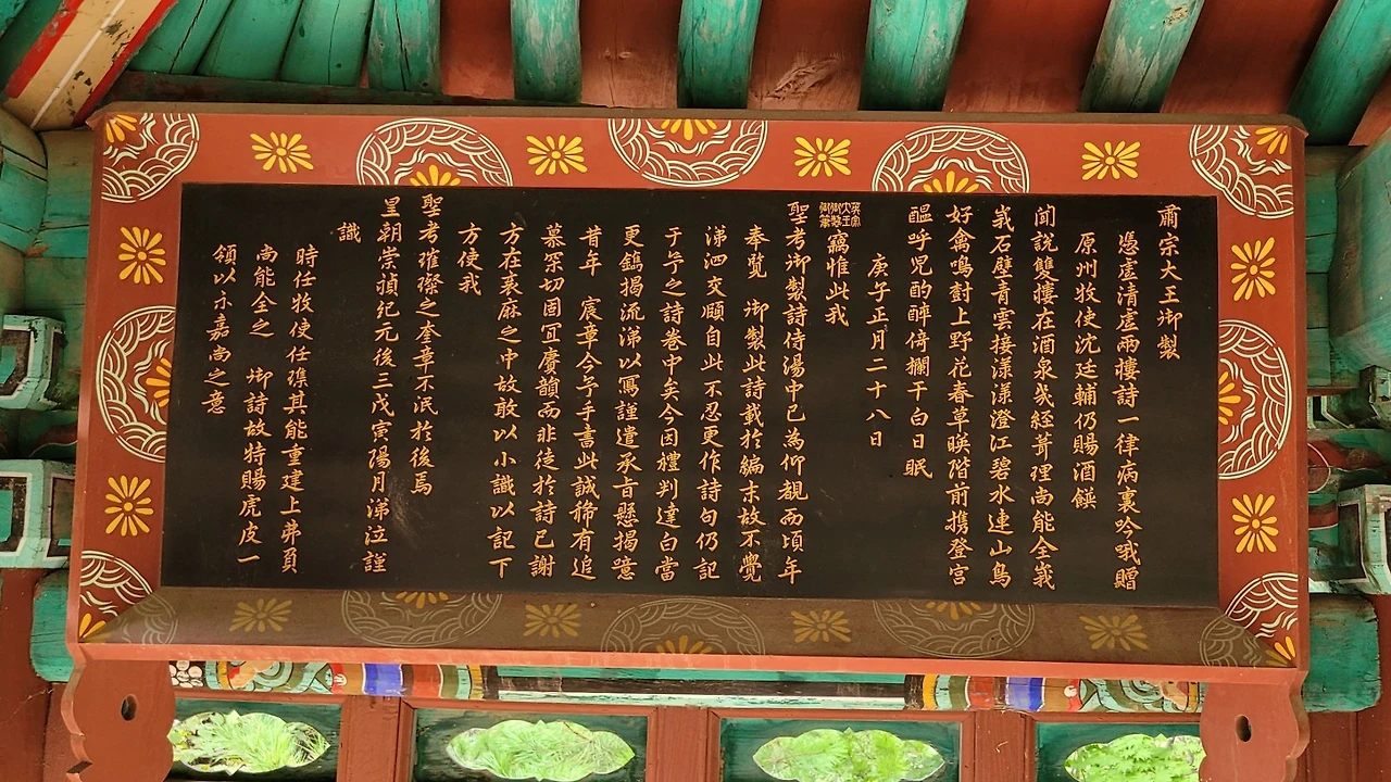 <요선정의 숙종 어제시 현판> 소실된 숙종의 어제시를 영조가 복원하고 그 내력을 함께 써서 건 새 현판