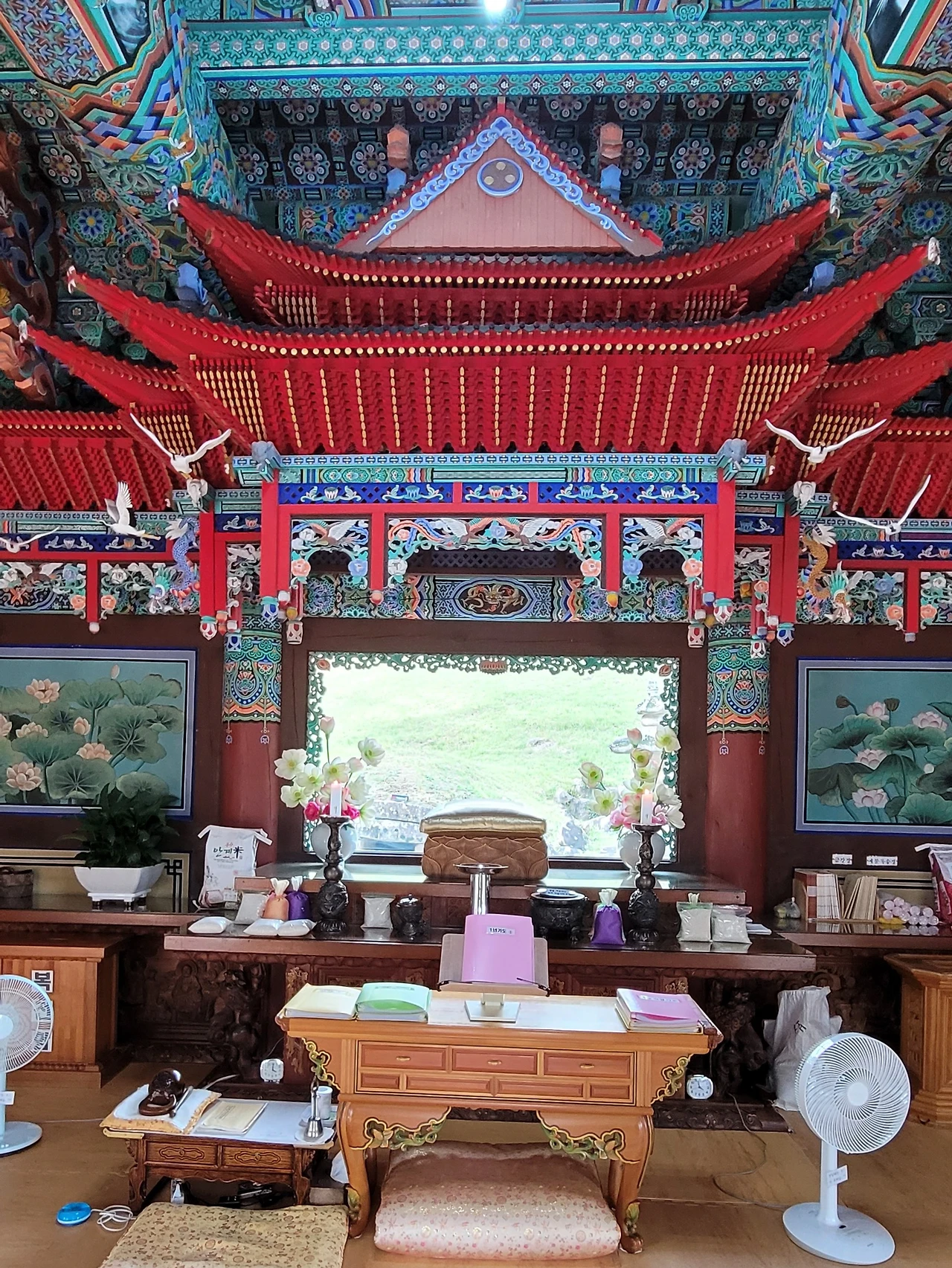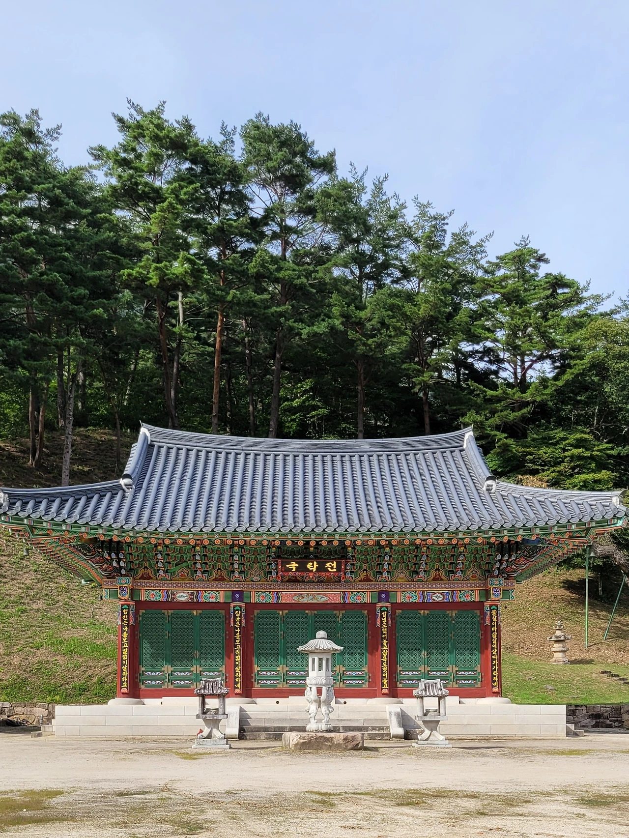 이 전설을 생각하며 언덕을 올려다본다. 햇빛을 받은 소나무 줄기의 불그스름한 빛이 그윽한 풍경소리와 어우러져 신령스러움을 더 한다. (2022. 9. 14)