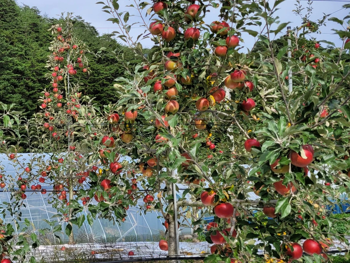 홍옥(紅玉)이 빨갛게 익어가는 사과밭 사잇길로 지나간다. 홍옥은 19세기 초반 미국에서 들어온 품종으로 국광과 함께 당시의 대표적인 사과 품종이었다. 과수원에는 '추억의 사과, 홍옥'이라 선전 문구를 써놓은 간판이 걸려 있다. '사재산 토종꿀'도 보인다.