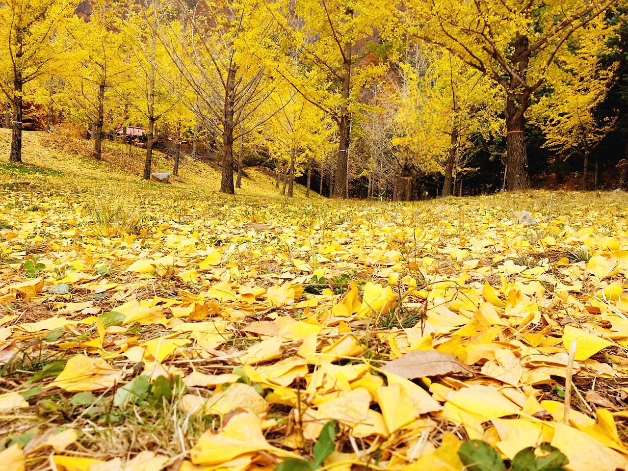 노랗게 물든 은행잎만큼이나 깊어가는 가을의 오브제가 있을까? 특히나 수많은 은행나무가 군락을 이루어 샛노랗게 하늘을 뒤덮고, 떨어진 은행잎이 노란 양탄자처럼 땅바닥을 뒤덮고 있는 곳이라면. 홍천 은행나무숲은 바로 그런 곳이다. 해마다 10월이면 한 달 동안 일반인에게 개방되는 그곳은 한 개인이 30년 동안 가꾼 숲이라고 한다. 5m 간격으로 은행나무만 2,000여 그루가 심어져 있다. 워낙 유명세를 치른 탓인지 새벽 일찍 서둘러 나서지 않으면, 한적한 숲 산책을 하기 힘들다. 가급적이면 평일 방문을 선택하는 것도 좋은 방법이다. 한 2주일 정도일까. 은행잎은 떨어지기 시작하면 한꺼번에 우수수 속절없이 내려앉는다.