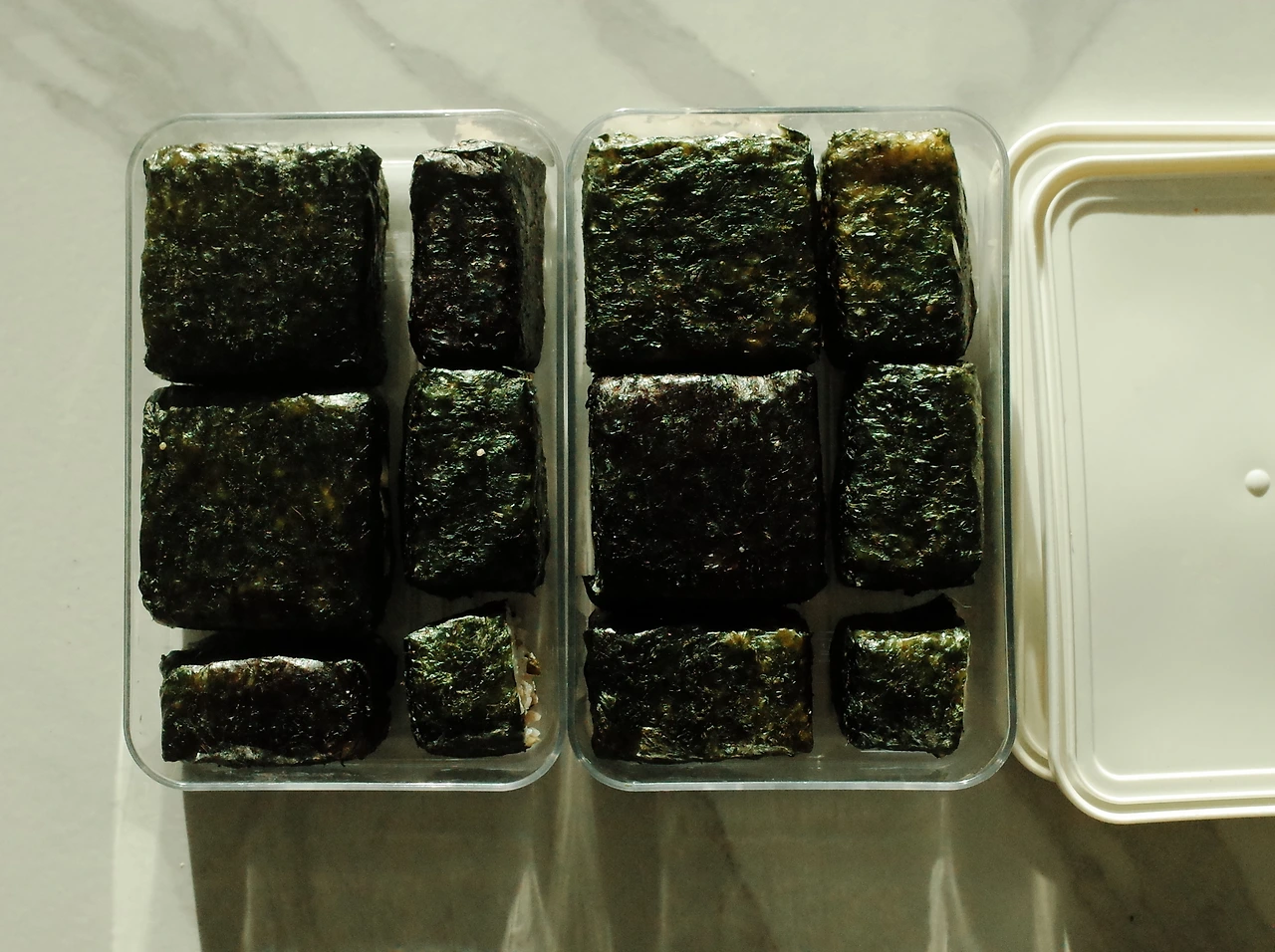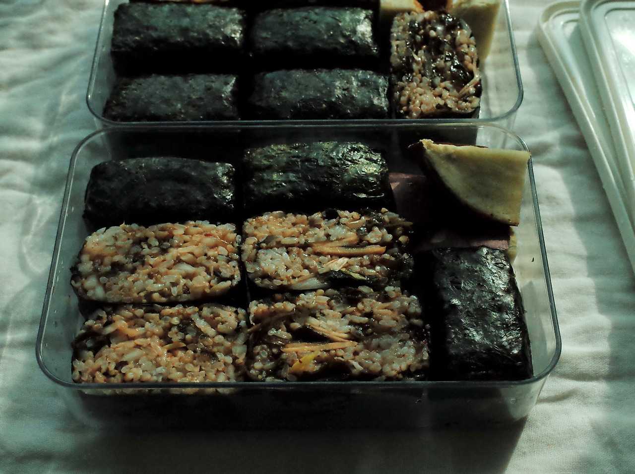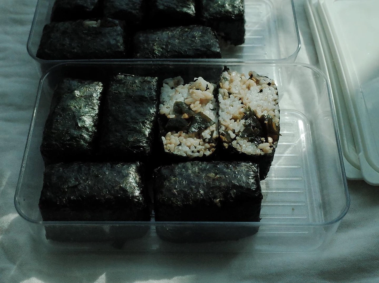 새벽에 혼자 도시락과 가족을 위해 주먹밥을 만드는 시간이 평화롭다.