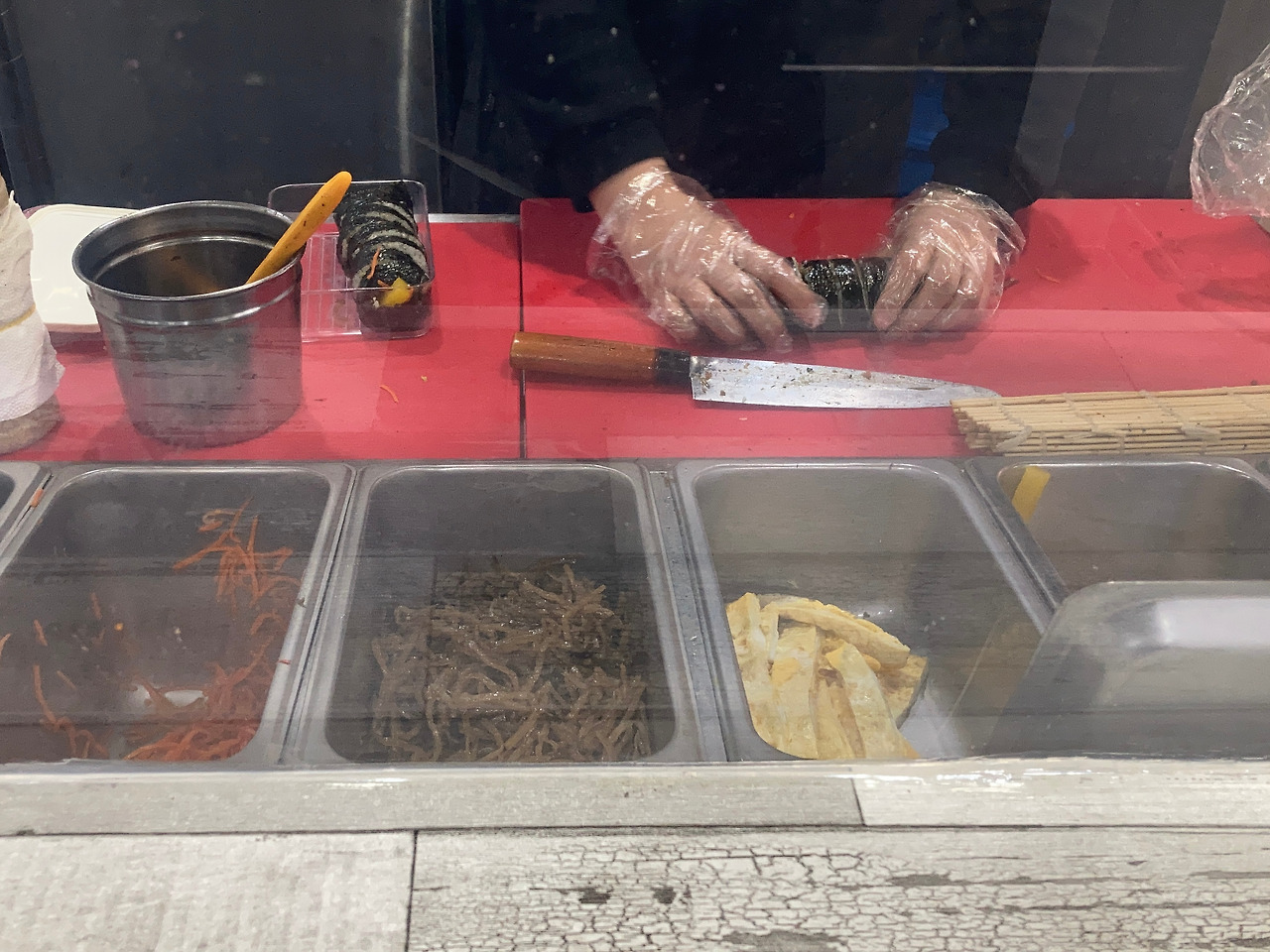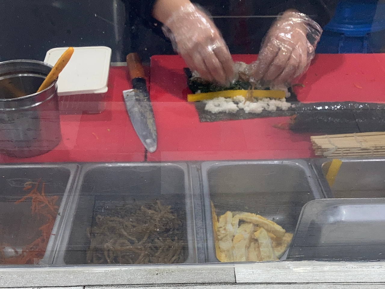 지방 출장으로 도시락을 챙기기 어렵게 되었다. 혼자 밥을 사 먹어야 할 땐 가져간 도시락통에 흔한 분식집 김밥을 테이크아웃 해서 먹었다.