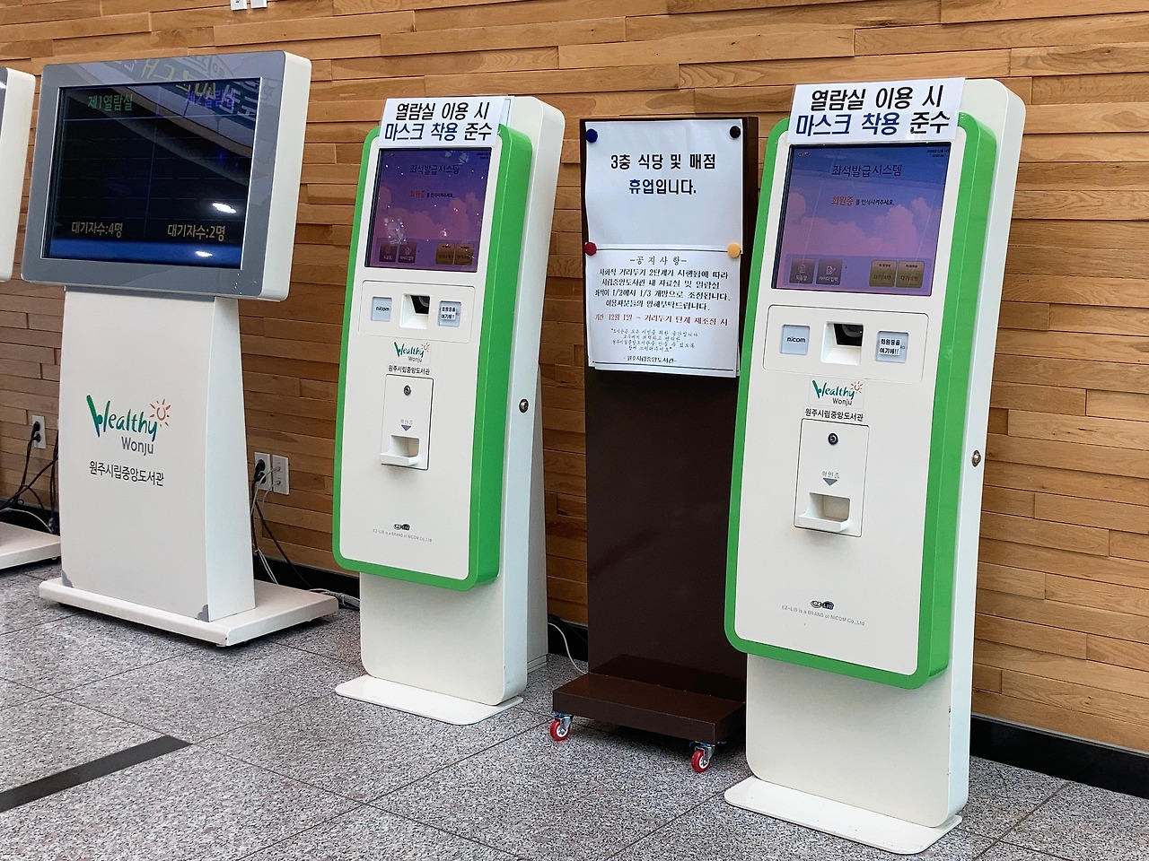 이용을 위해 입구에 있는 기계에서 시간과 자리를 배정받거나 예약을 하면 된다. 1인석, 2인석, 3인석과 같이 함께 앉을 수 있는 자리도 있다.