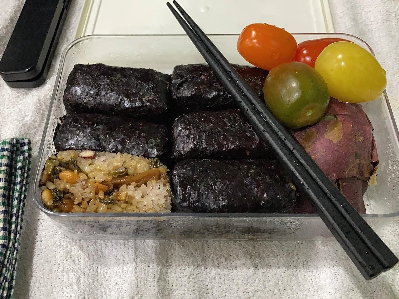 초조림이 들어간 새콤한 주먹밥은 입맛을 당기게 하기도 하지만 식초의 살균 작용 덕분에 음식이 상하는 걸 방지해 준다. 사실 나는 종종 도시락을 두 개 싸서 다니며 저녁도 똑같이 해결하고 있다.