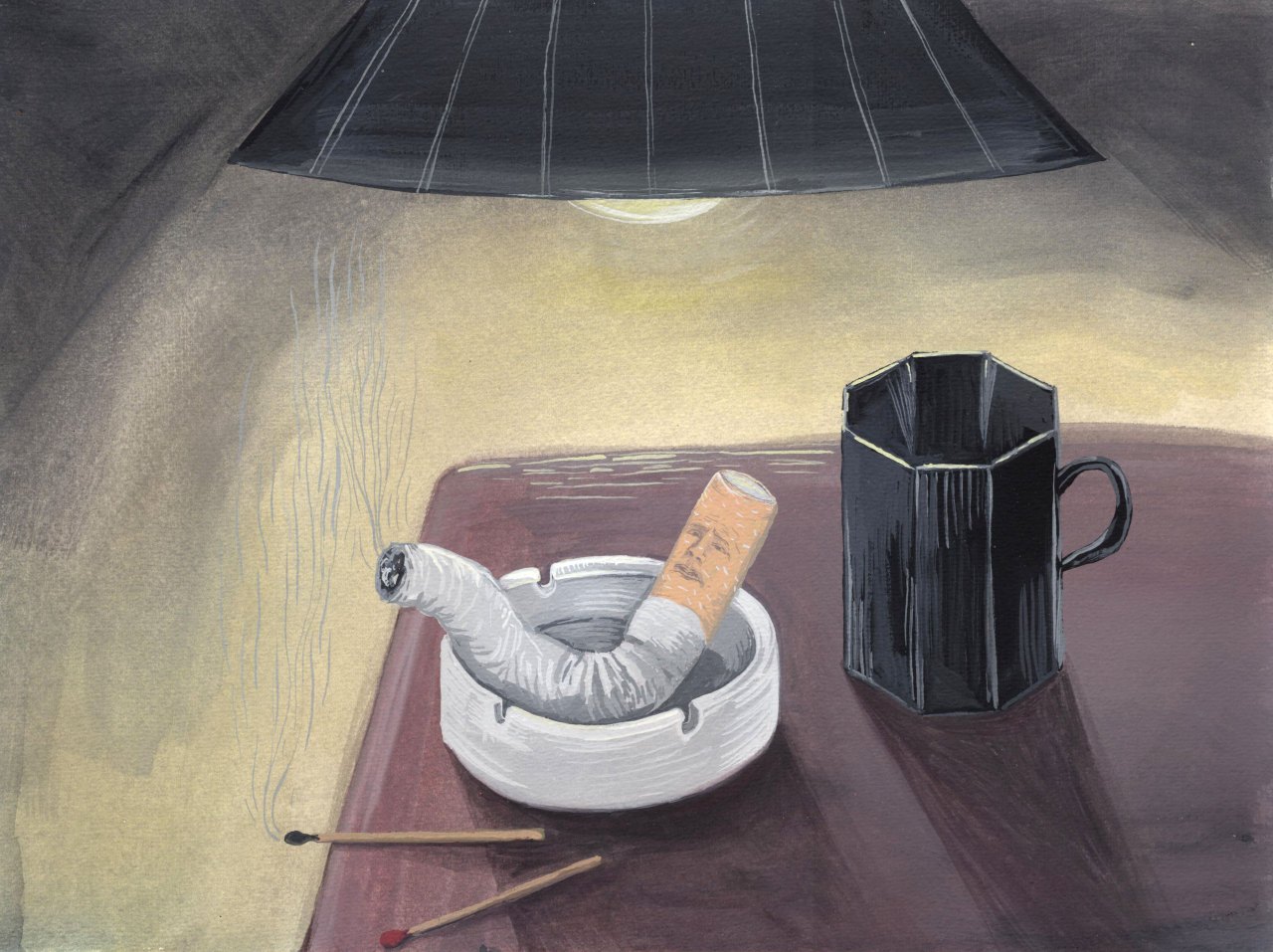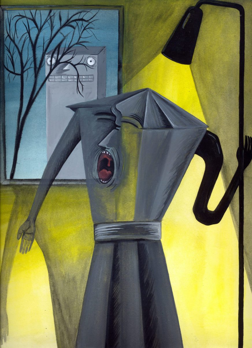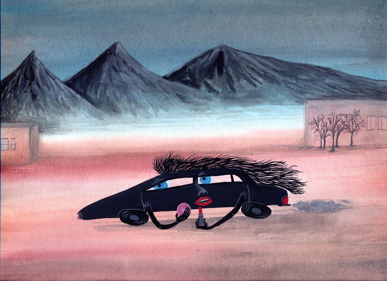 화장하면서 달려가는 자동차, 경직된 얼음, 한숨을 쉬고 있는 담배, 하품하는 커피포트… 일상이라는 진지하지 않은 세계를 매우 진지하게 유쾌한 상상력을 동원해 사실적인 표현법으로 묘사하고 있다.