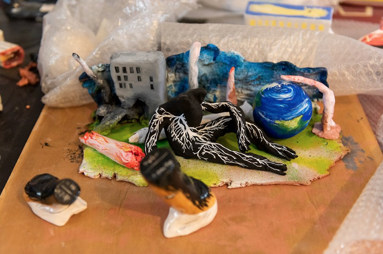 “저는 벼룩시장과 먼지 쌓인 지하실의 단골 방문자이기도 해요. 개인과 세대의 유적지를 재현하려고 해요.” Guido의 작품은 가벼움과 진지함, 익숙한 것과 그렇지 않은 것을 수월하게 엮어낸다. 작가는 순수미술 전공 배경을 가지고 있으며, 종종 현실 세계를 상상으로 묘하게 비틀어 구체적으로 묘사하는 플라망어와 중세 미술, 초현실주의 작품 또한 중요한 영감으로 생각한다.