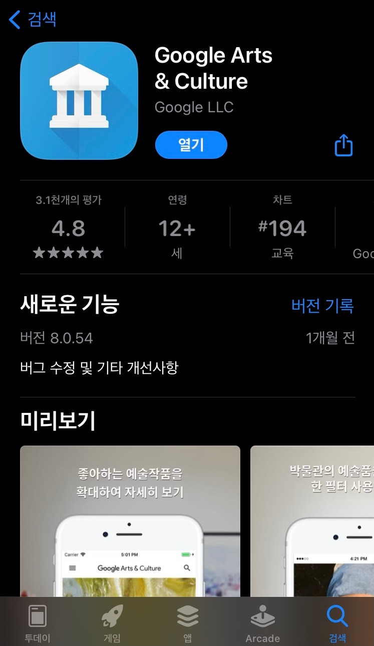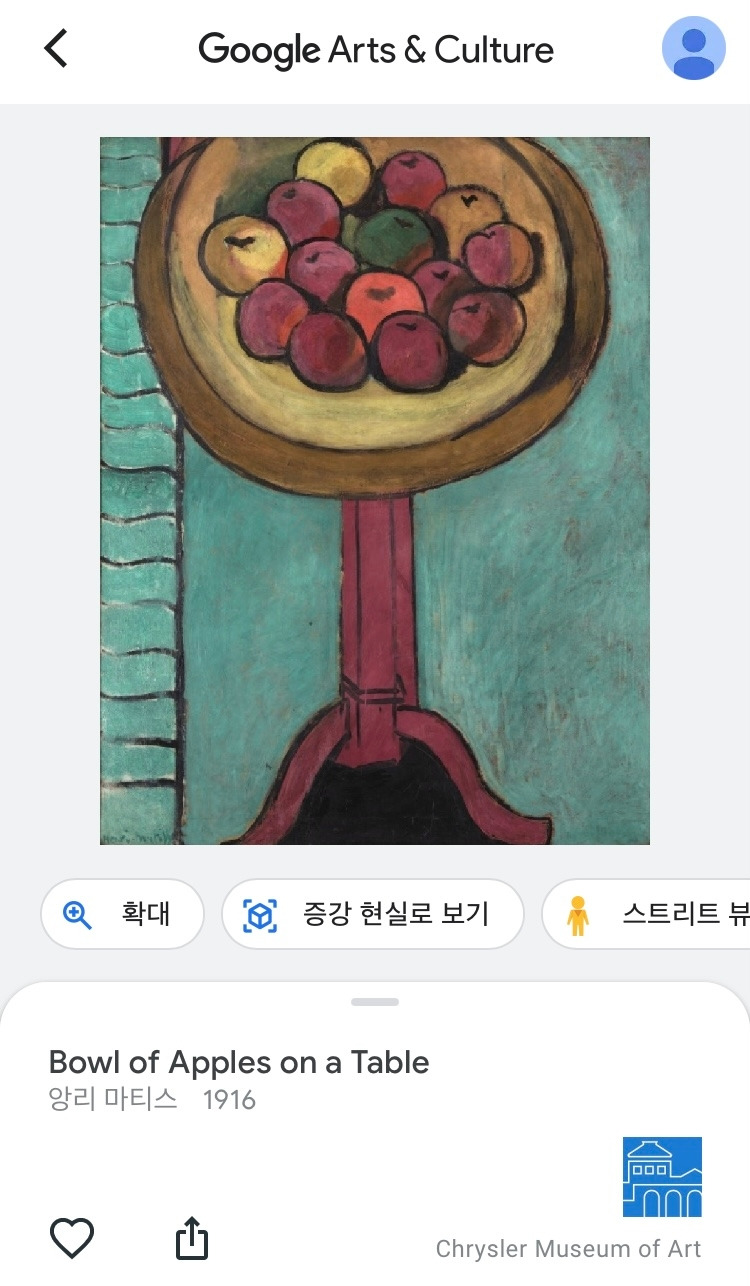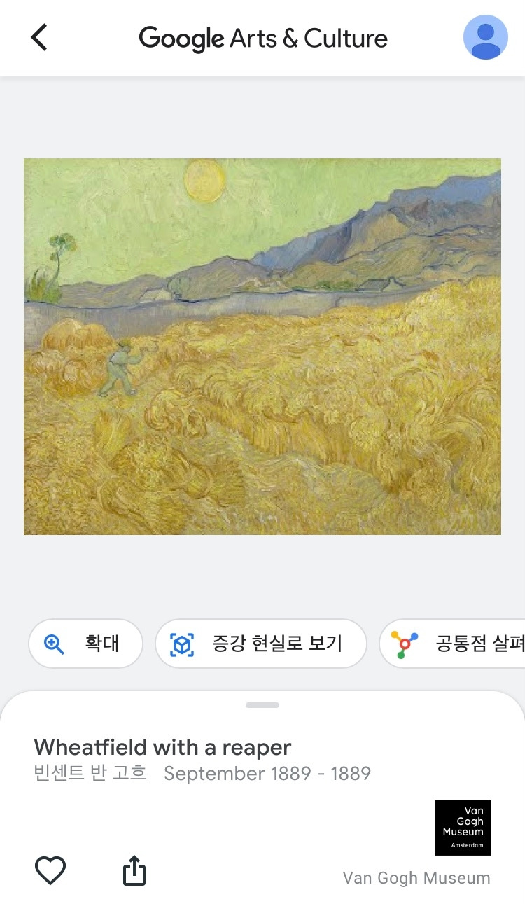 구글에서 선보인 Google Art & Culture 앱을 깔았다. 전문적인 자료 검색까지는 아니지만, 세계의 주요 박물관 및 미술관과 협업하여 종합적인 시각 문화 자료를 확인 할 수 있다.