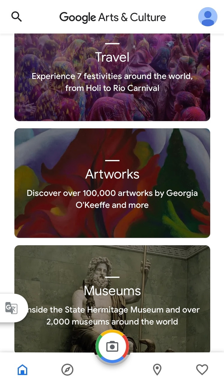 첫 화면의 Games, Places, Travel, Artworks, Museums 등 주제별로 나누어진 섹션에서 Artworks를 클릭해 보았다.