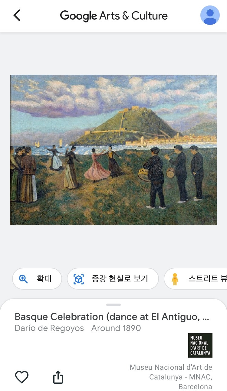 그 밖에 ‘추천’ 기능은 동시대에 제작되었거나 시각적으로 비슷한 그림을 찾아볼 수 있게 해준다. 반고흐의 프로방스 풍경을 감상하며 바르셀로나에 소장된 레고요스의 어느 한가로운 오후를 만나고, 19세기의 낭만적인 풍경들을 엽서를 넘기듯 훑어보았다.