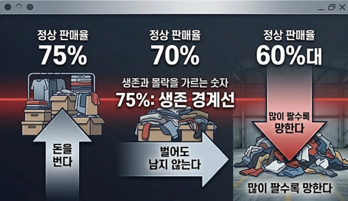 하지만 정상 판매율이 75% 아래로 떨어지는 순간,