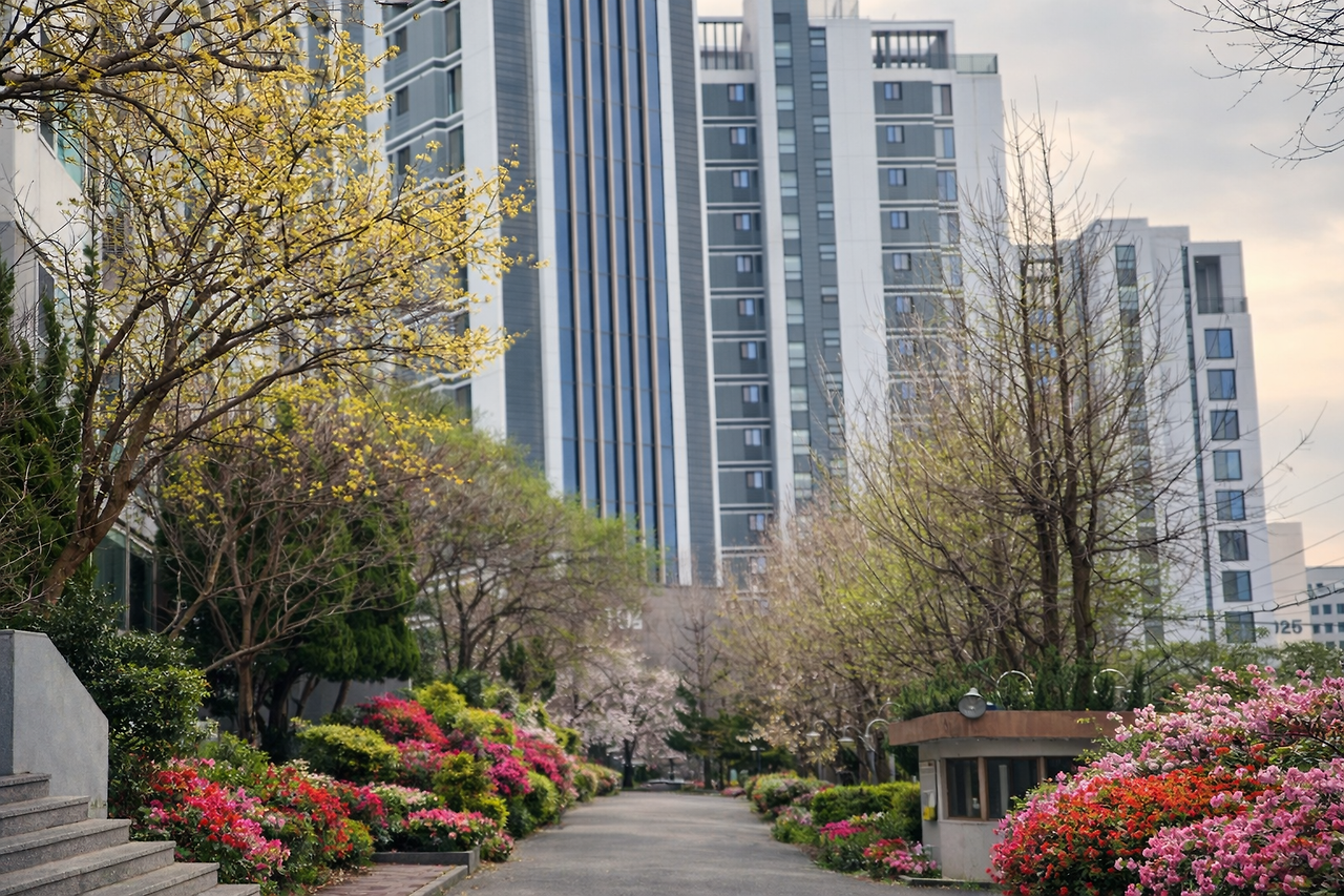 봄이 깊어가는 자리에서 아파트 단지 사이로 난 길이