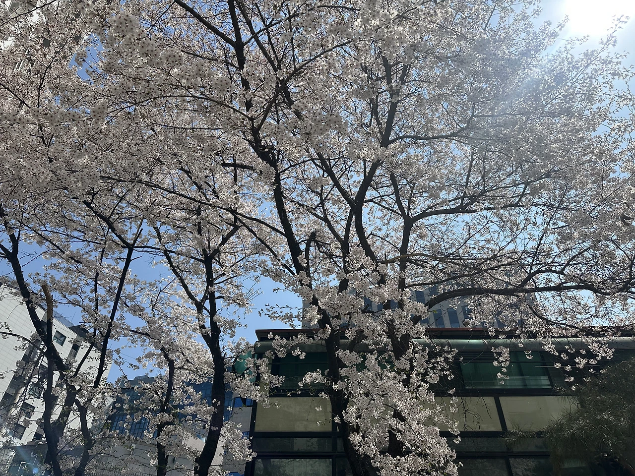 새 사옥 근처에는 벚꽃이 흐드러지게 피어 있었다.